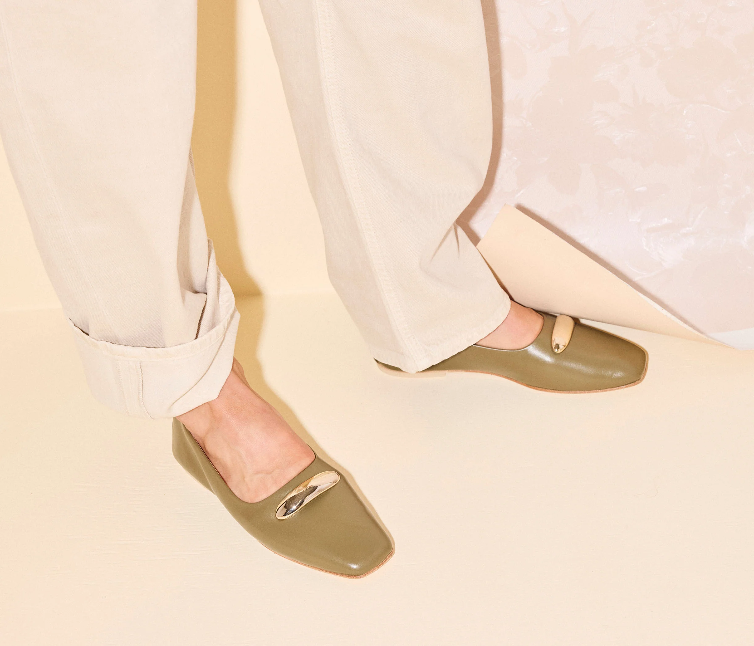 Our iconic ballet flat reimagined with exclusive gold crescent hardware designed by Natalie Borton. Handcrafted in Spain, made in limited quantities.