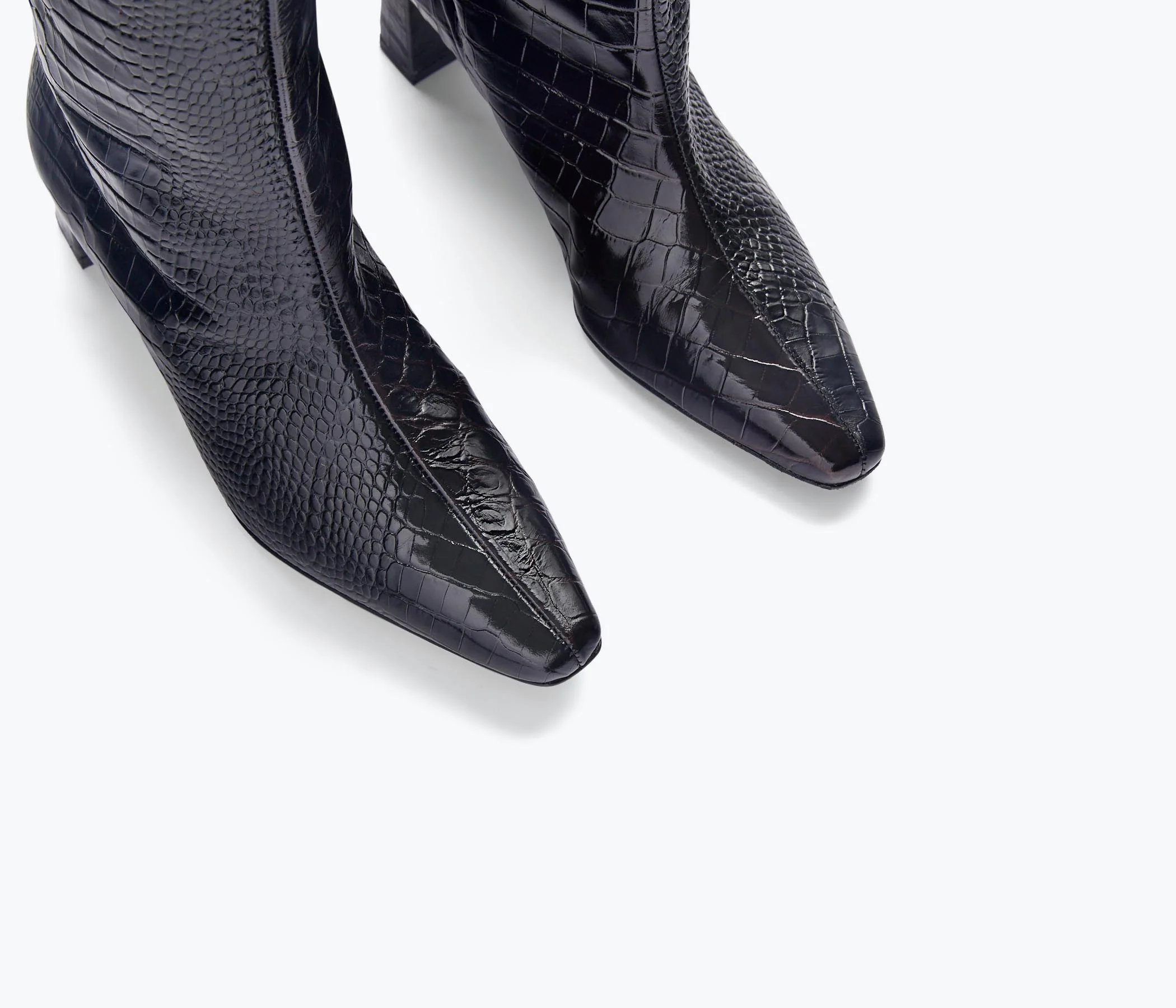 Our split personality boot. Handcrafted in contrast embossed croc, the PHOENIX is elevated with a mid-heel, square toe and tall shaft that rises just below the knee. The pull-on function fits effortlessly into every fall wardrobe and we’ll be wearing them with sweeping hems or wide-legged cropped pants.
