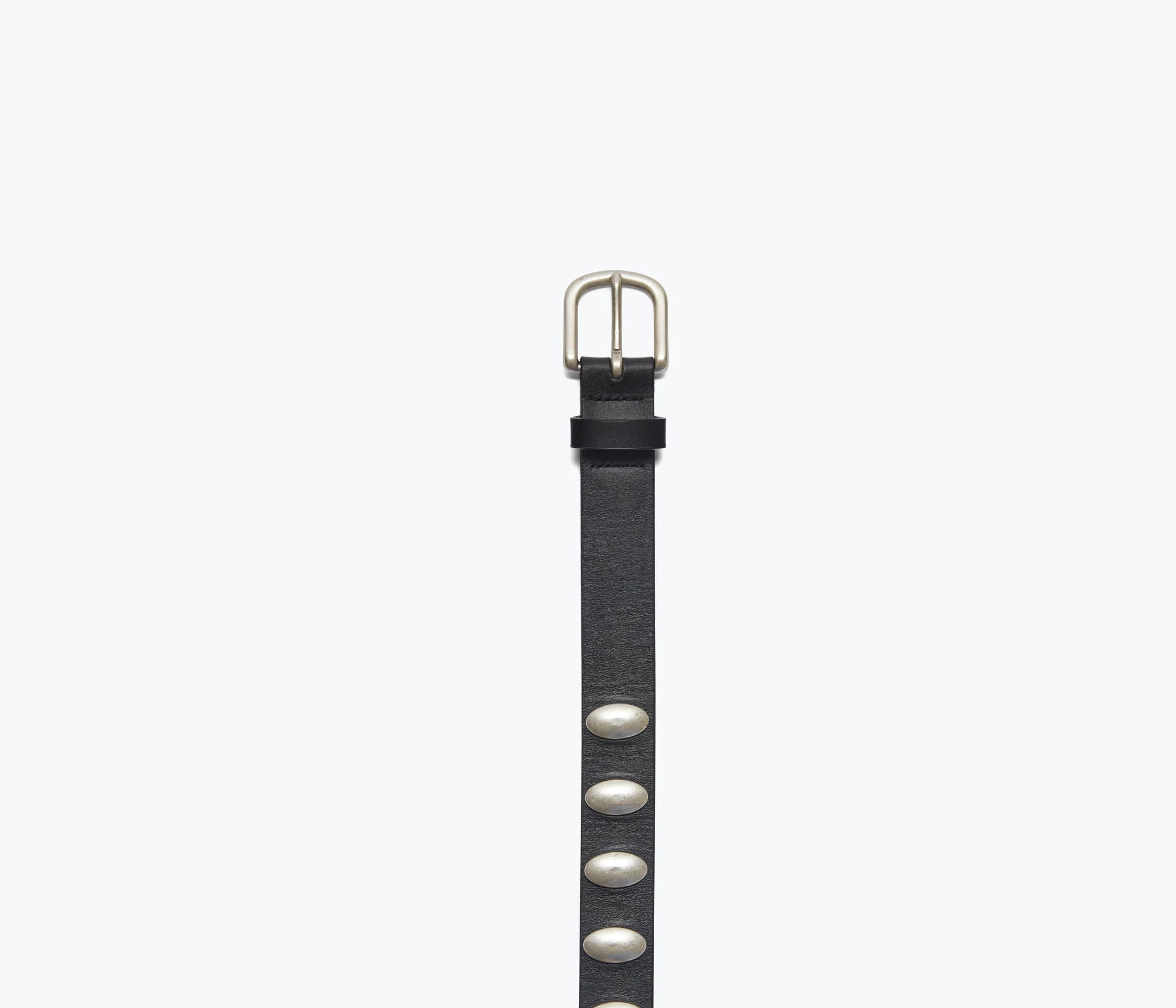 The studded classic. Made by hand with Italian black calf and reimagined this season with statement oval studs, the REBECCA belt is made for the natural waist and has a timeless buckle. Designed to tie every look together, we love how this style adds polish to everything in your closet.