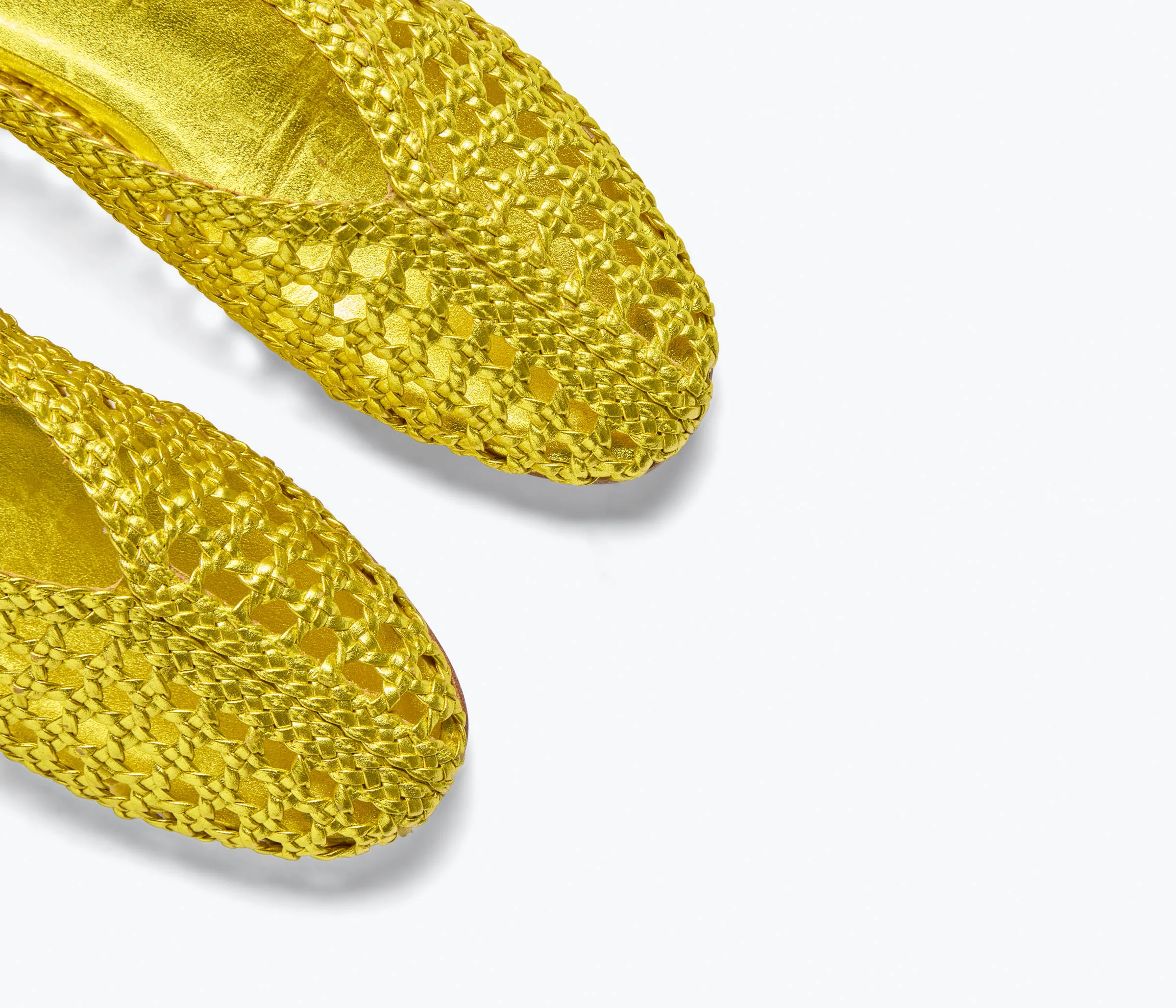 Modern and cool–this ballet will add a hint of 90s nostalgia to your vibe with its artisanal open weave that subtly exposes the foot. Handcrafted in Spain.